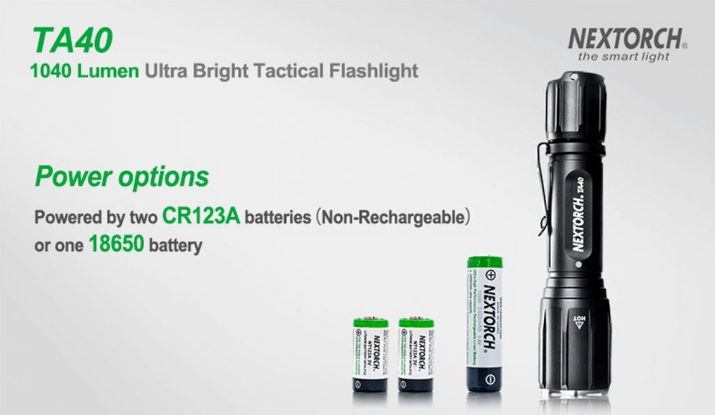 The TA40 is NEXTORCH’s newest 2014 lumen ultra bright flashlight model, successor to the brilliantly crafted TA4,a quality standard, and advancing to higher standards in brightness. The TA40’s highest beam delivers 1040 lumens, much more than other similar tactical flashlights. One could call it the king of single lithium-ion single core tactical flashlights. Its new and inventive user-friendly design, the meticulous craftsmanship of its construction, the ultra strong combination of functions, all make the TA40 the king of its category.